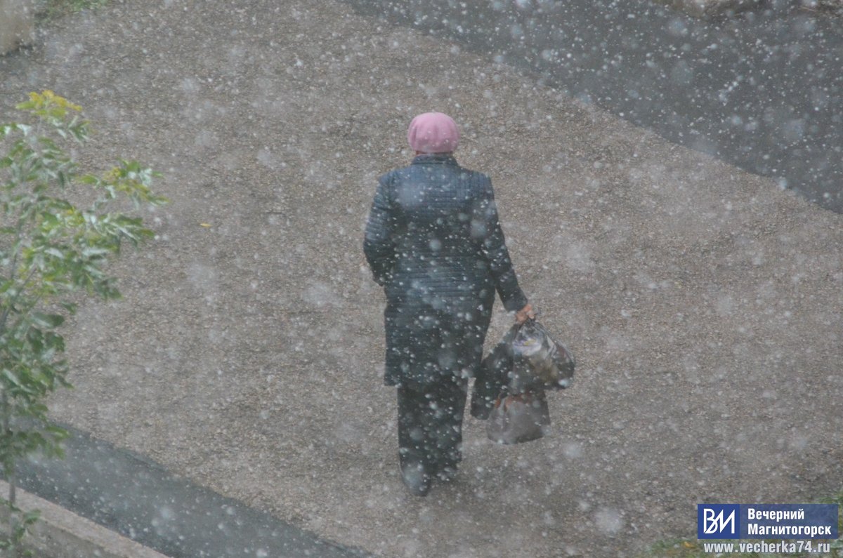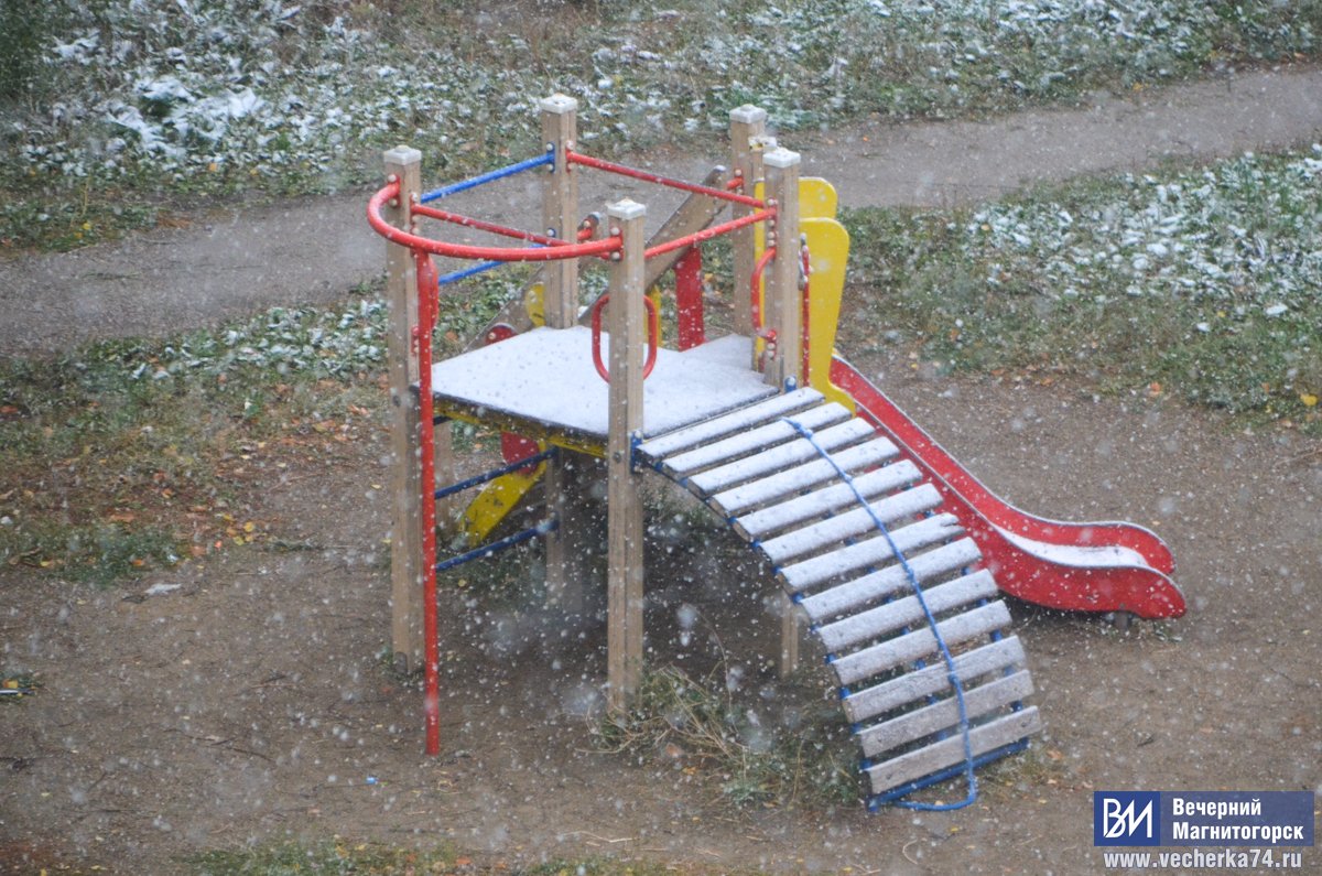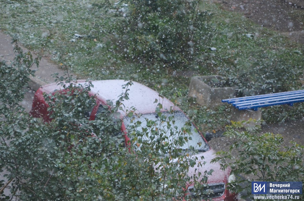 Первые снежинки можно было увидеть вечером 28 сентября, а сегодня утром, 29 сентября, снег усилился.