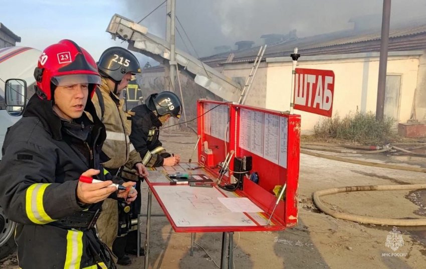 На месте пожара был развёрнут штаб пожаротушения и созданы два боевых участка. Воду для тушения брали из пожарного водоема, расположенного на территории комплекса.