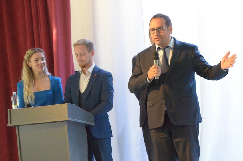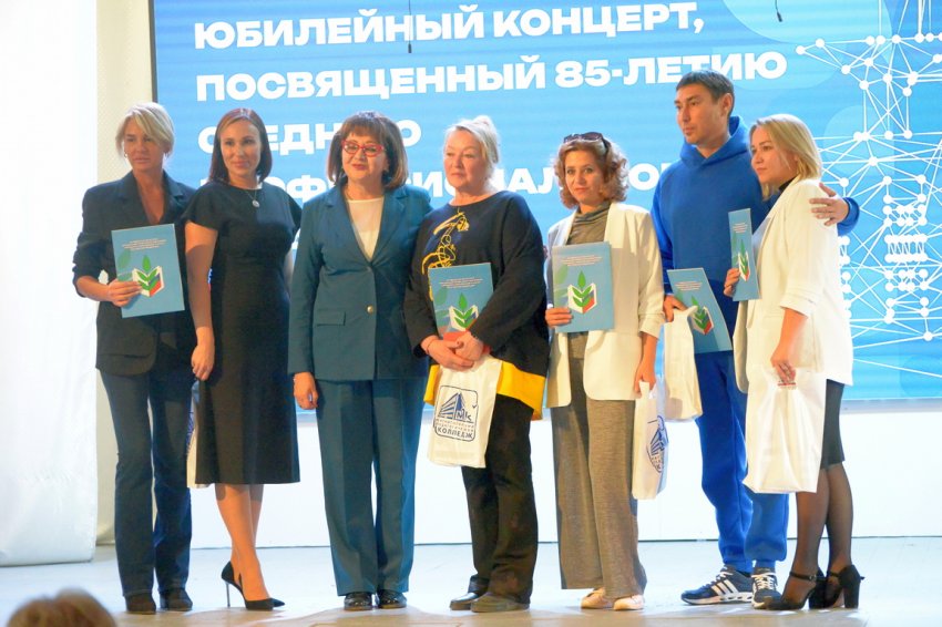 На торжественном собрании яблоку негде было упасть — почётные гости из мэрии, Совета ветеранов, министерства образования и партнёров пришли поздравить коллектив. Мы специально не перечисляем все фамилии — это не протокол, а репортаж о большом празднике.