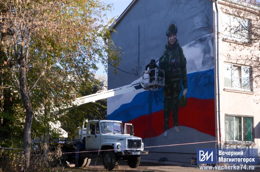 В Магнитогорске на многоквартирном доме по адресу Чайковского, 37 появится рисунок, на котором изображен военнослужащий на фоне российского триколора.