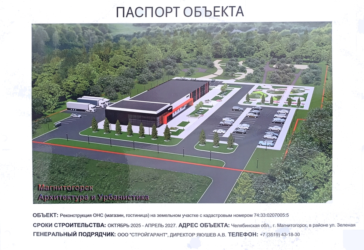 Согласно проекту, планируется возведение одноэтажного здания, включающего в себя гостиницу и магазин.