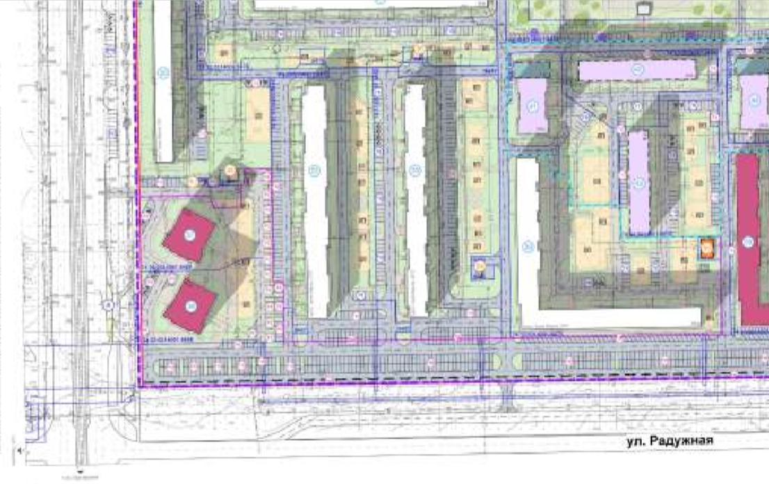 "Новые дома будут располагаться под углом примерно в 45 градусов к существующей застройке и проезжим частям. Дома по индивидуальному проекту, из ж/б панелей, с утеплением фасада снаружи, штукатуркой и окраской. Т.е. выглядеть будут совсем не как панельные дома. Близкий пример - новостройка треста за ТЦ ДОМ. Балконы и лоджии здесь аналогично остекляются в пол",