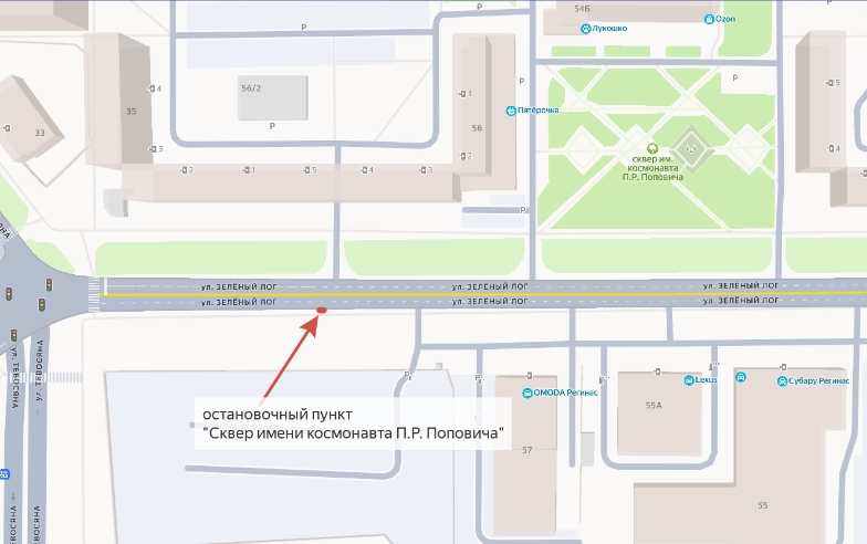 В Орджоникидзевском районе с южной стороны улицы Зеленый лог в районе дома № 57 по улице Зеленый лог – «Сквер имени космонавта П.Р. Поповича».
