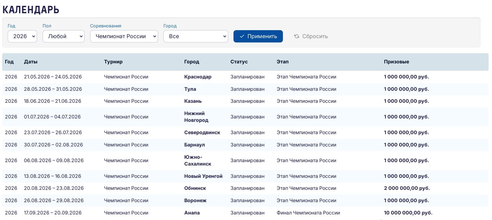 Информация о возможной отмене соревнований появилась давно, но официально об этом стало известно только после опубликования календаря.