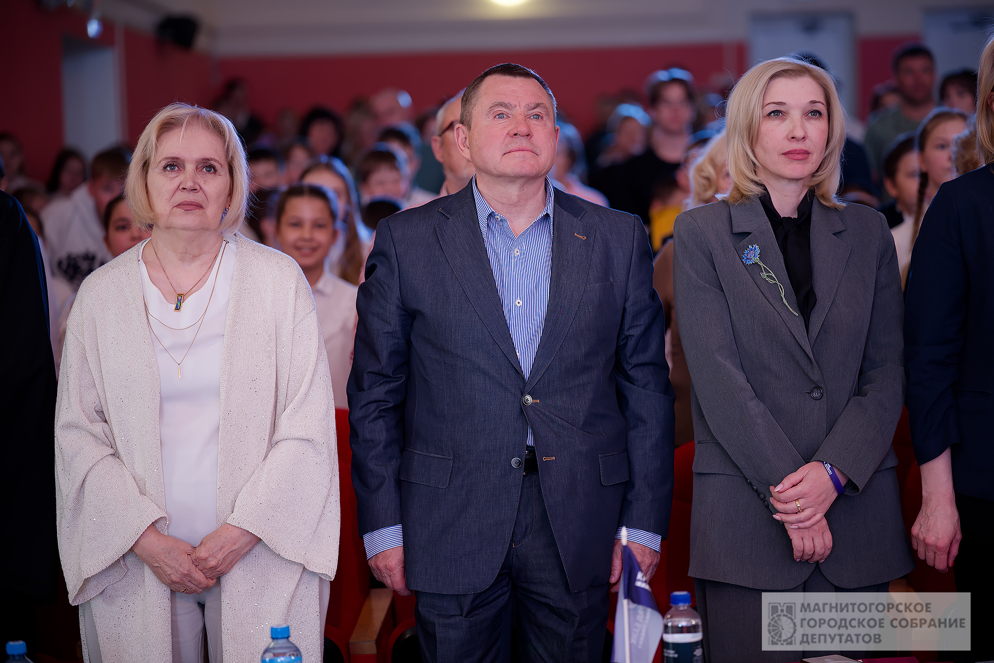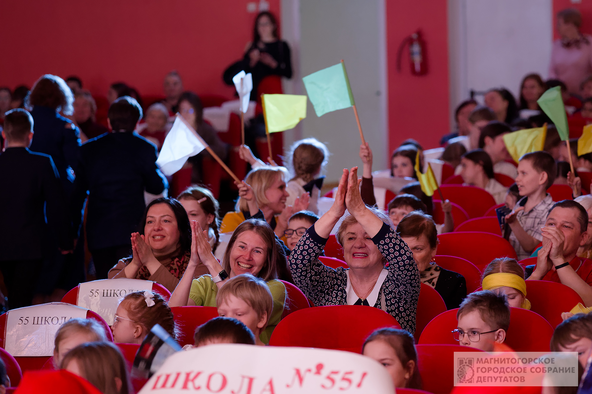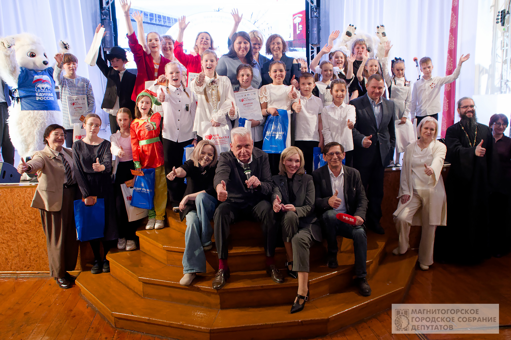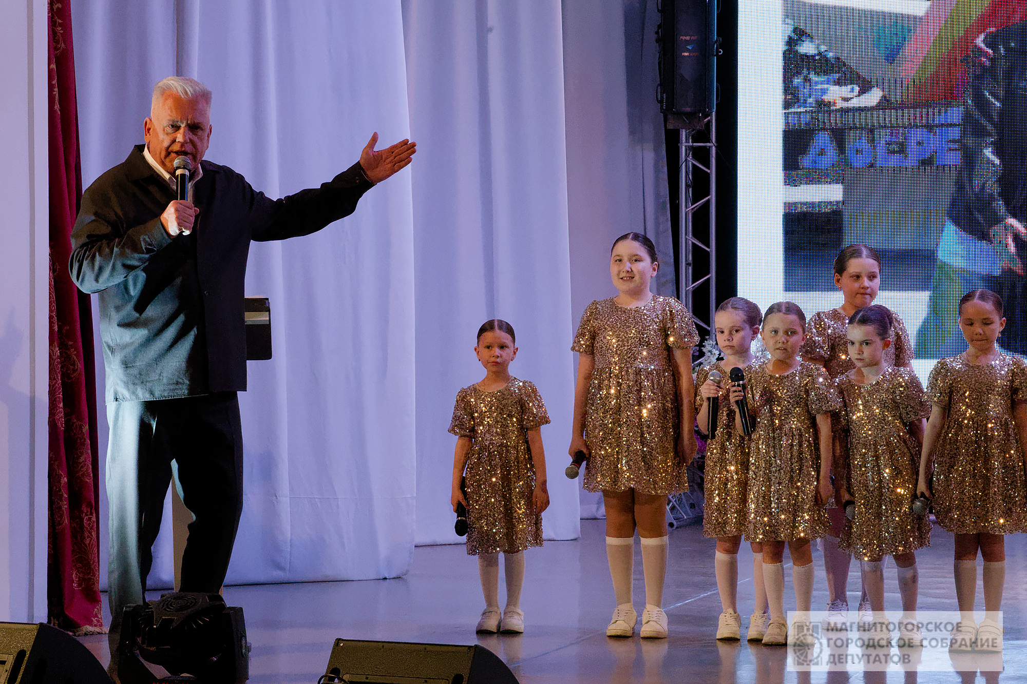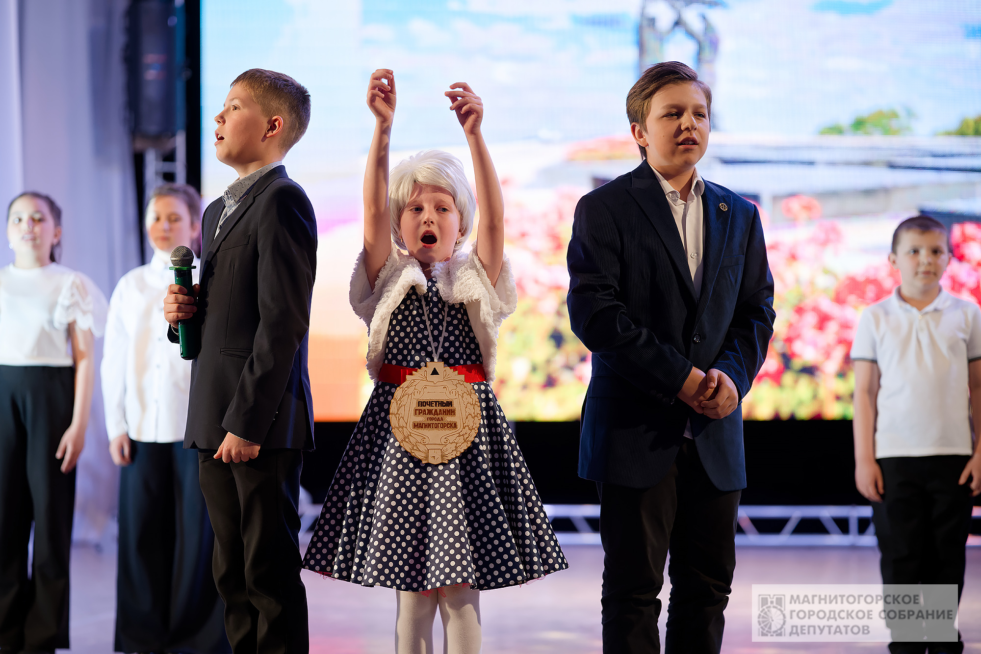 Михаила Шуфутинского «Магнитогорск - мой город на Урале», на сцене поют детский хор «Счастливые голоса» и… председатель Собрания