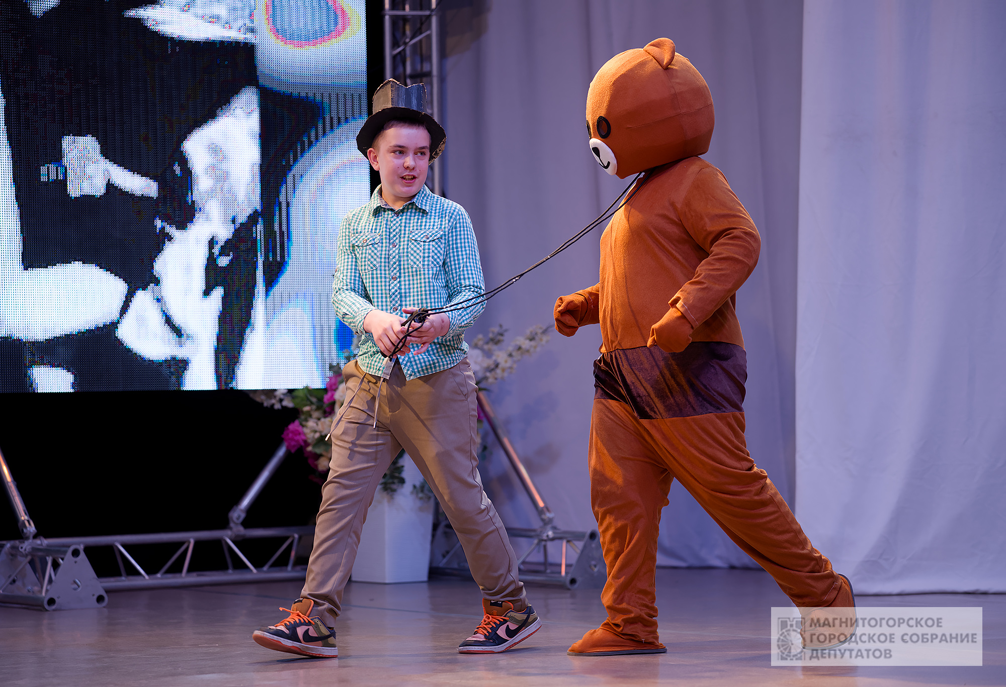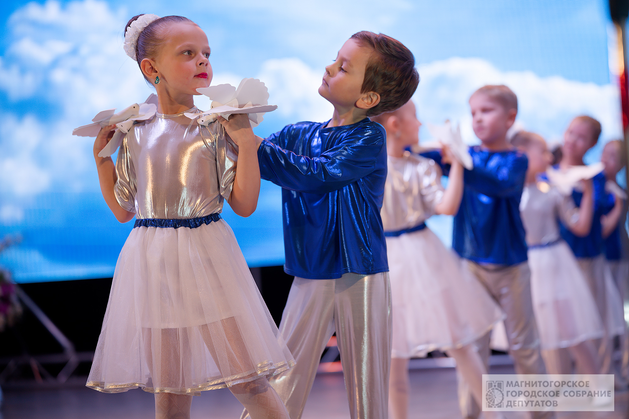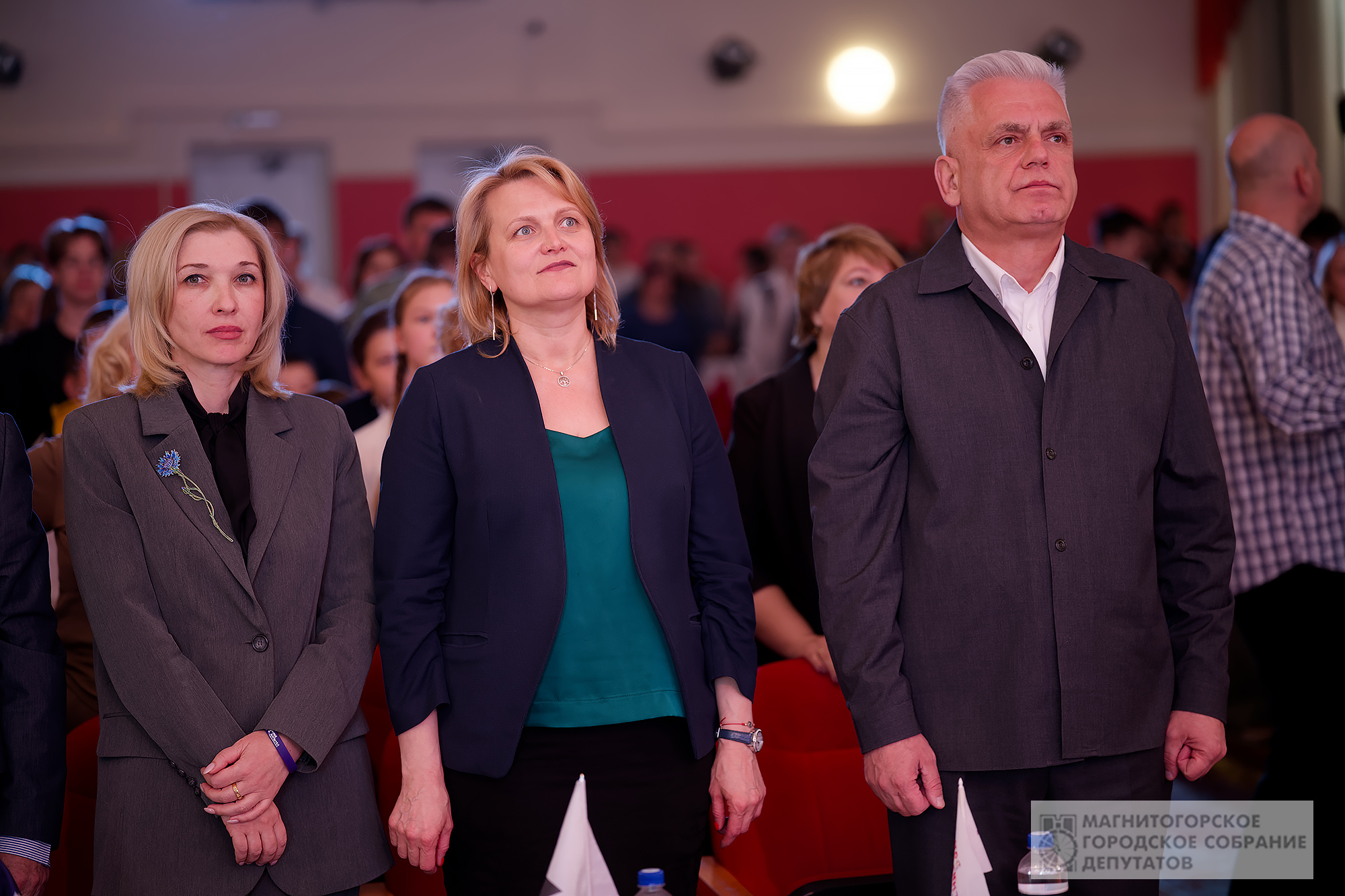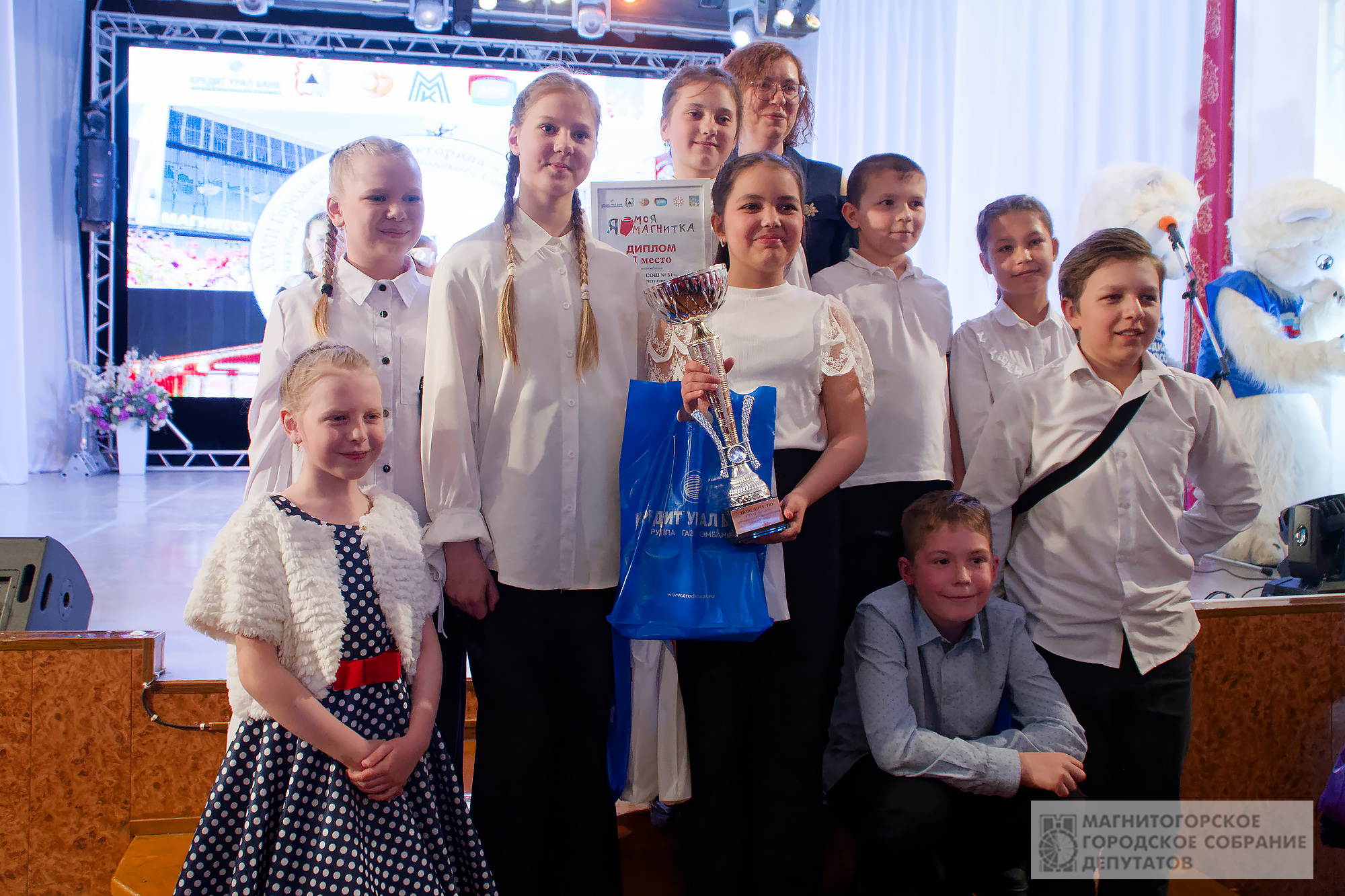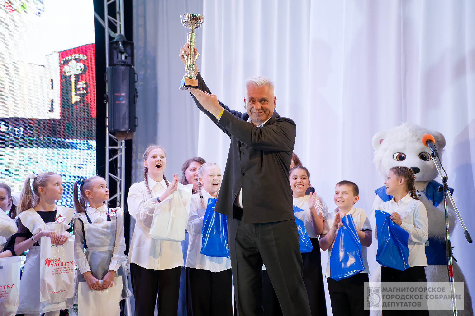 Михаила Шуфутинского «Магнитогорск - мой город на Урале», на сцене поют детский хор «Счастливые голоса» и… председатель Собрания