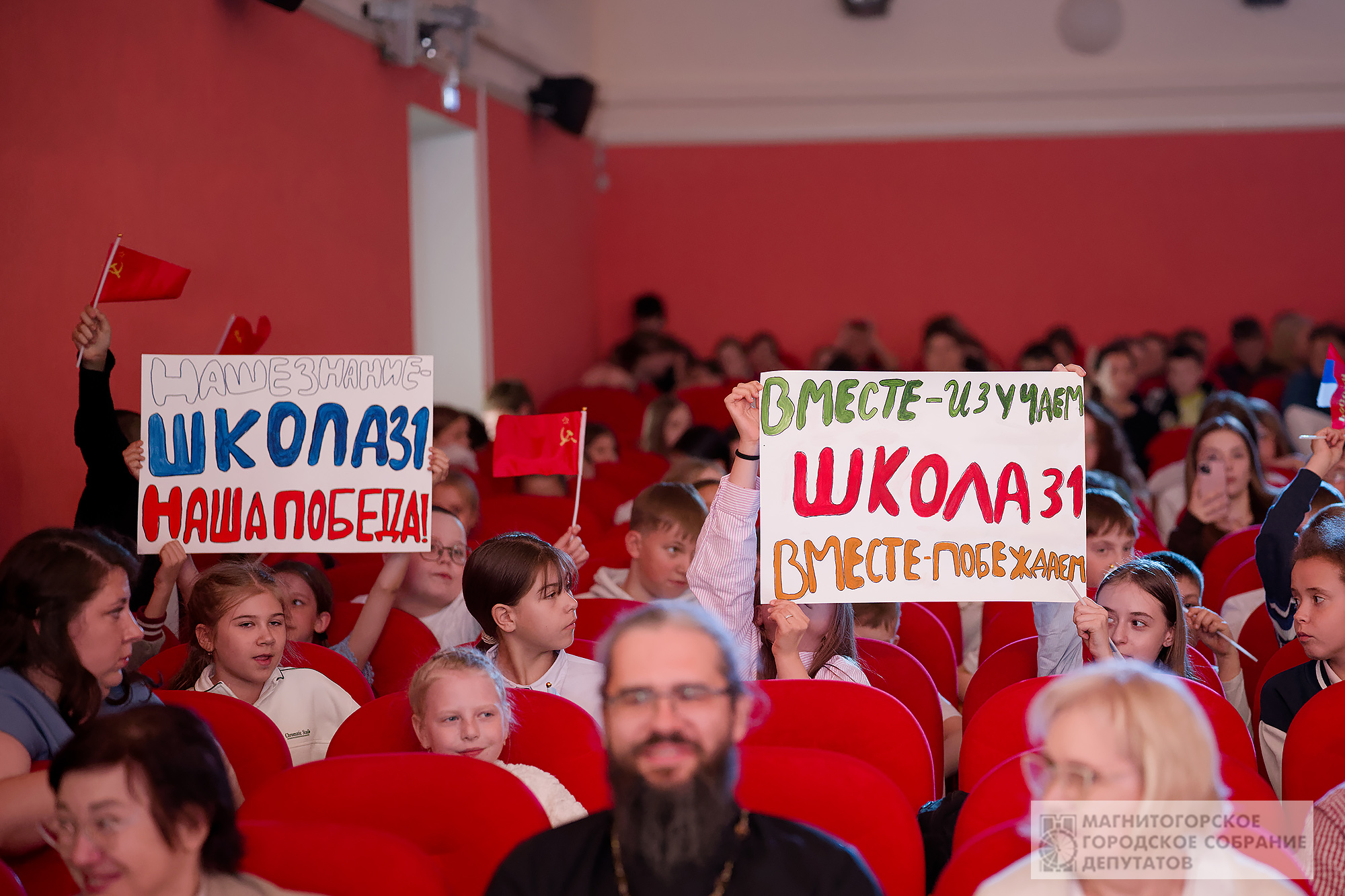 Но самым запоминающимся выступлением, давшем команде наибольшее количество очков, стал рассказ ребят из школы №31 об истории создании гимна Магнитогорска. А когда на сцену вышли ребята, как будто настоящие авторы гимна