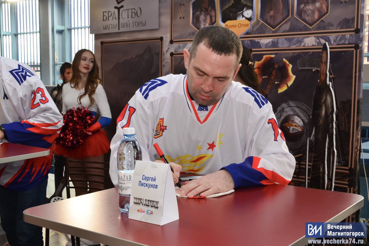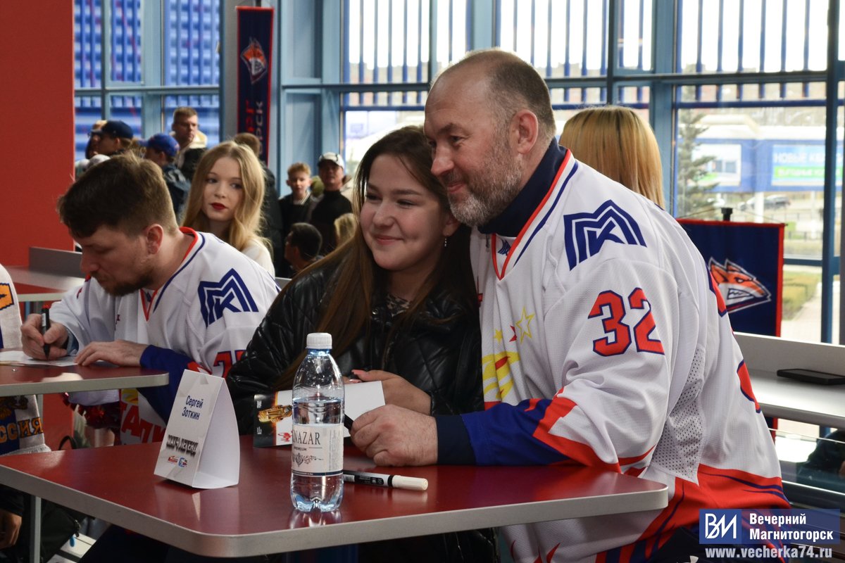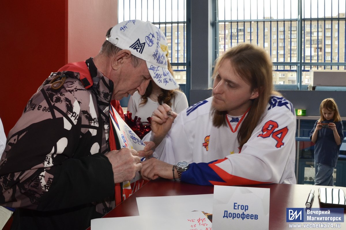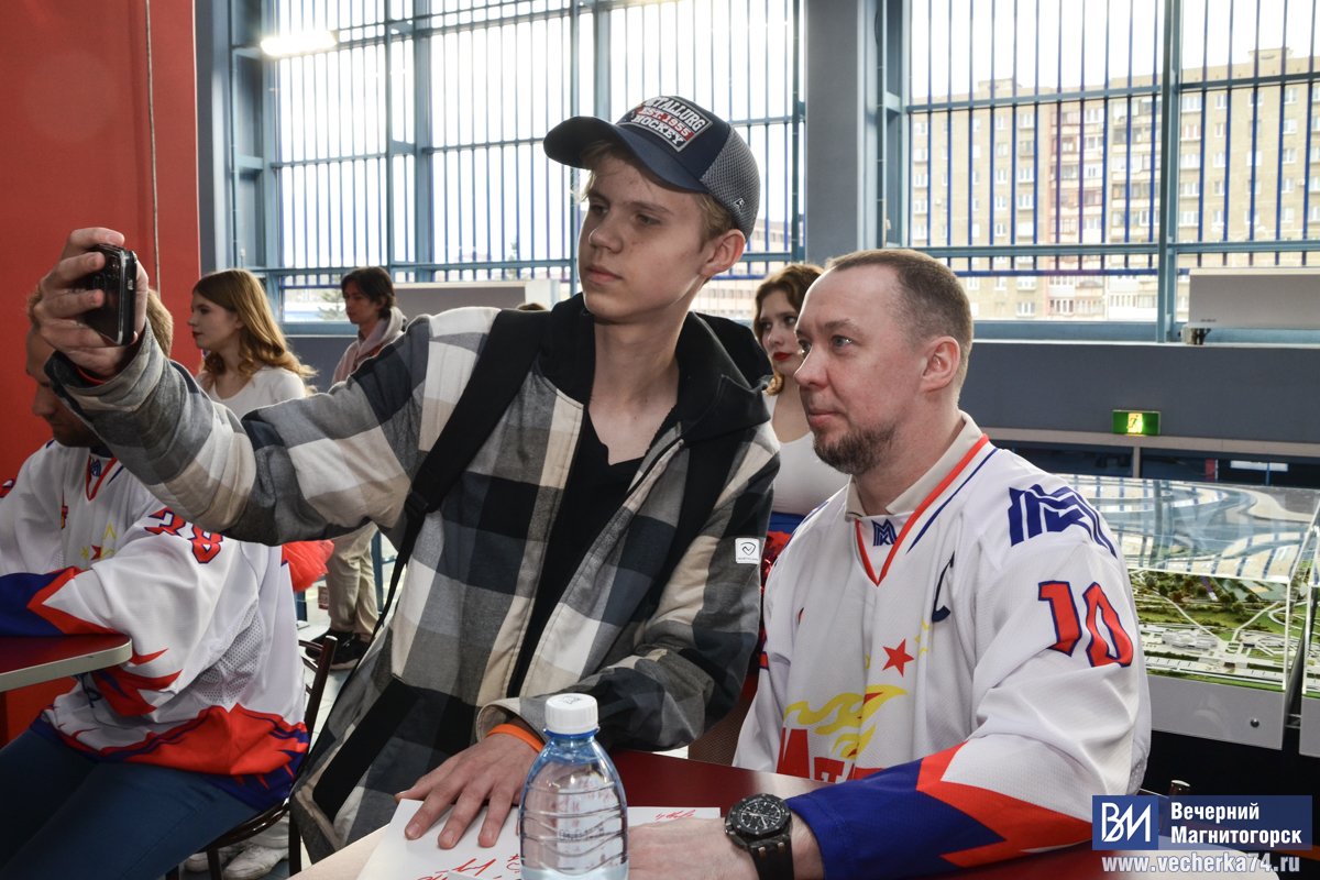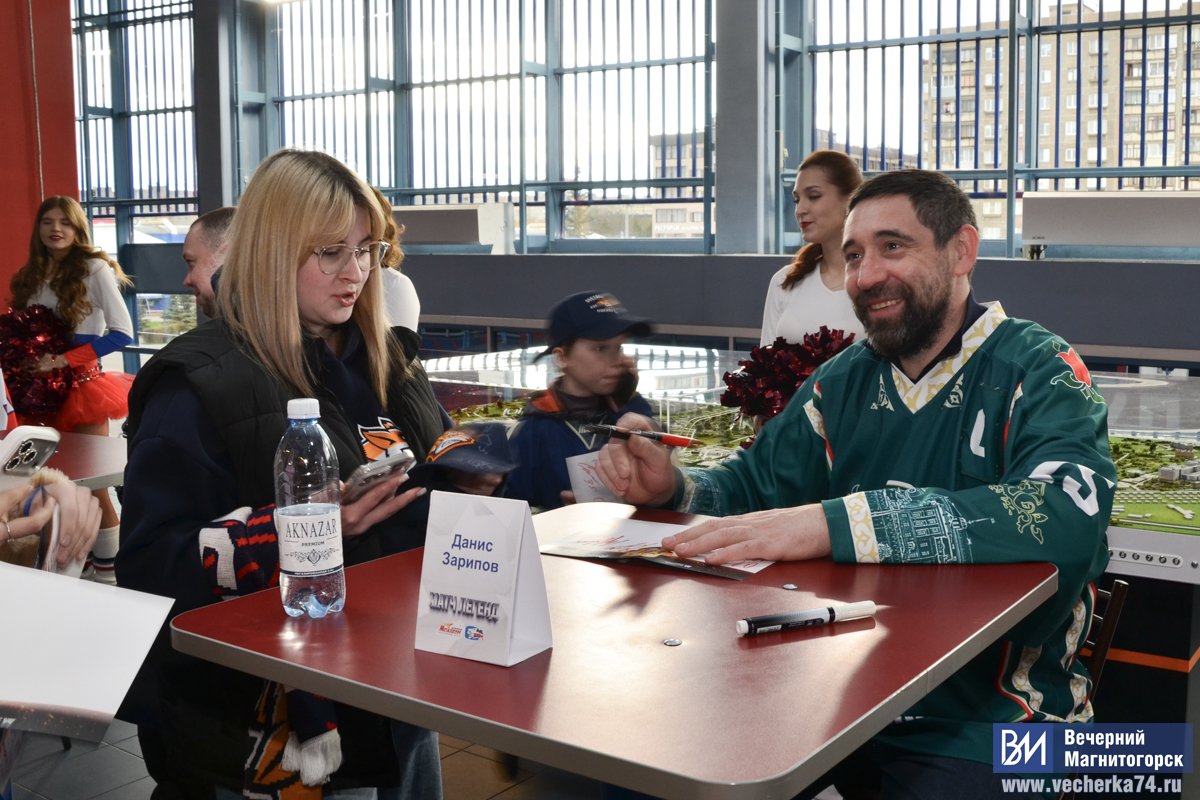 Более получаса игроки команды легенд "Металлурга" фотографировались с болельщиками и подписывали специально подготовленные для этого карточки.