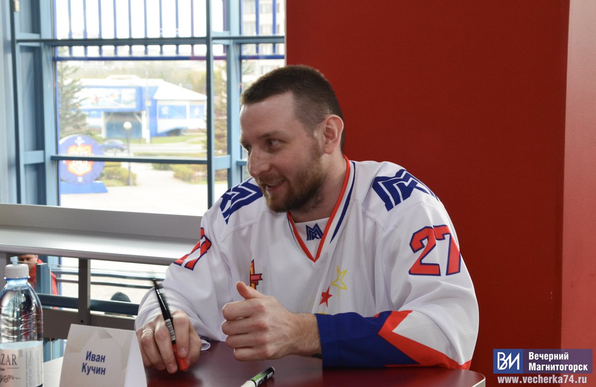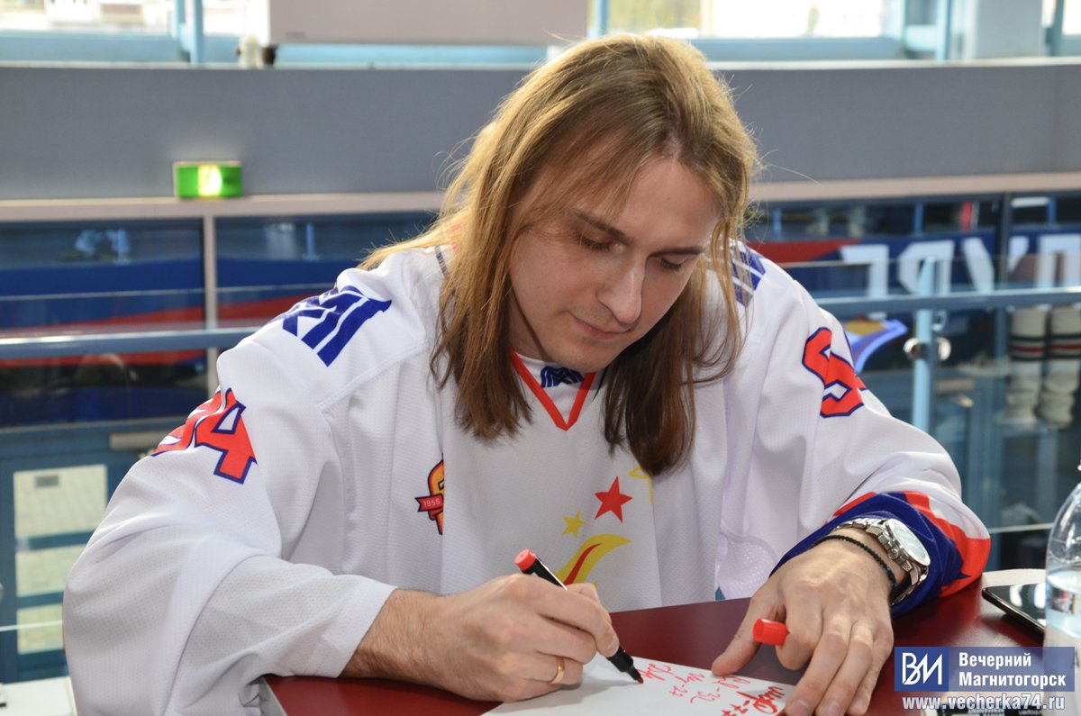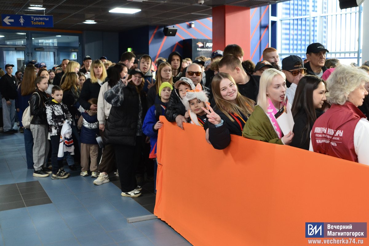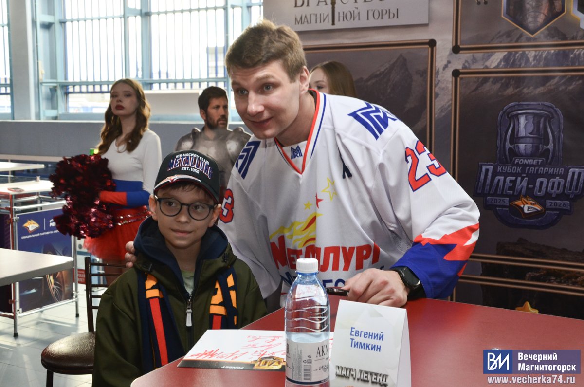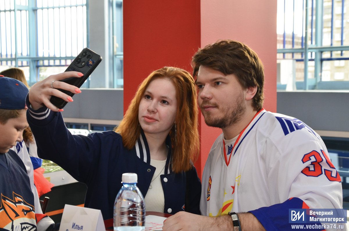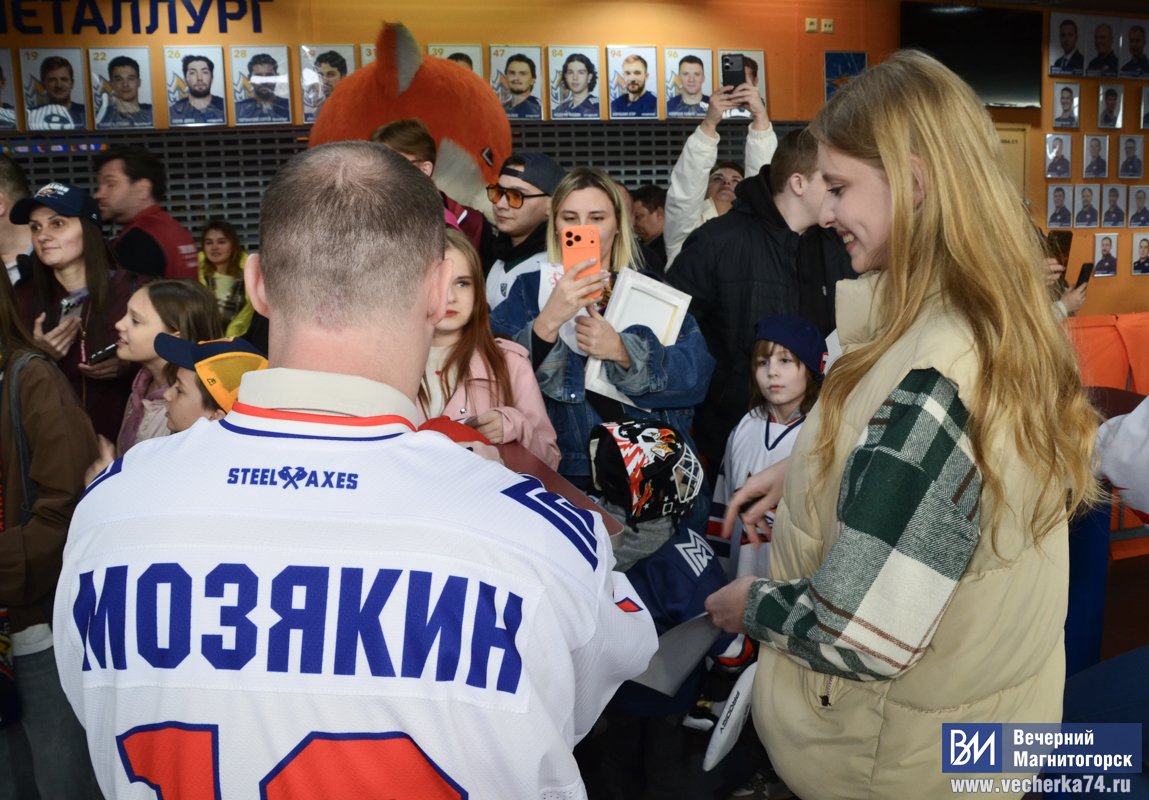 Более получаса игроки команды легенд "Металлурга" фотографировались с болельщиками и подписывали специально подготовленные для этого карточки.