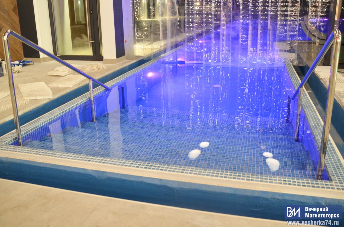 Здесь их будет пять: внутренний теплый бассейн с гидромассажными ваннами, уличный горячий бассейн, детский бассейн под крышей и на улице. Также есть холодная купель и большой инфинити-бассейн с переливами.